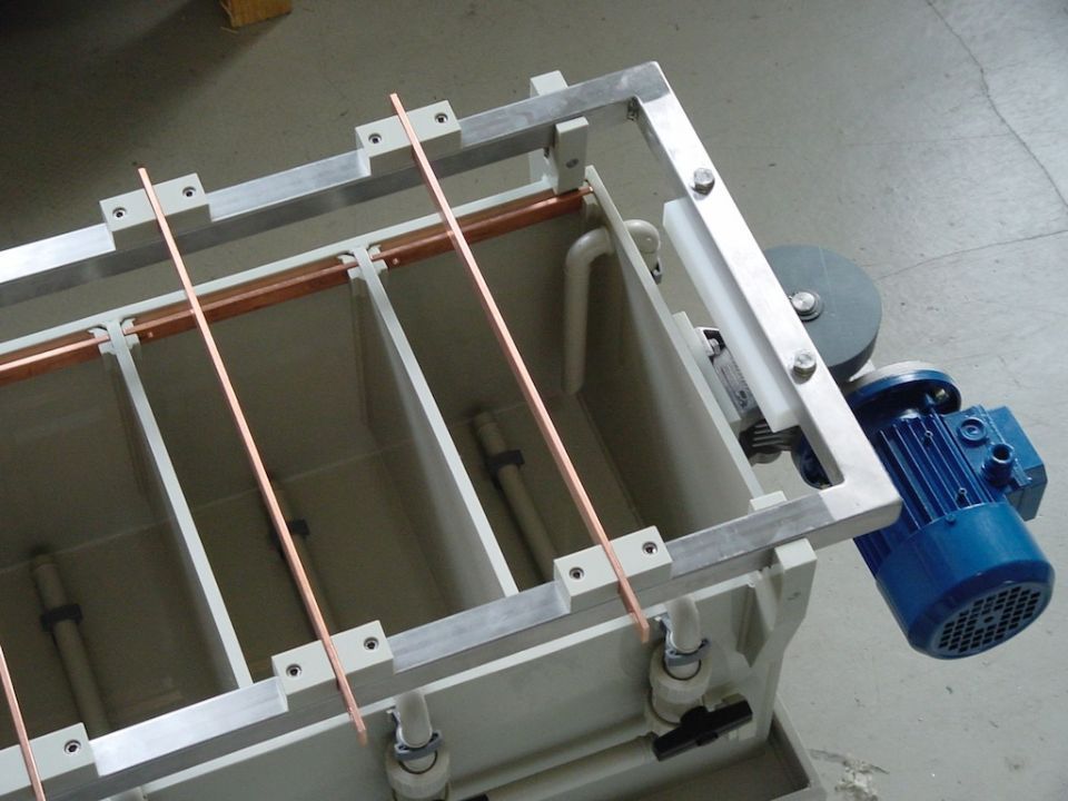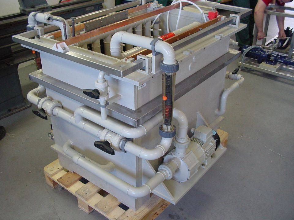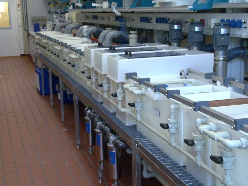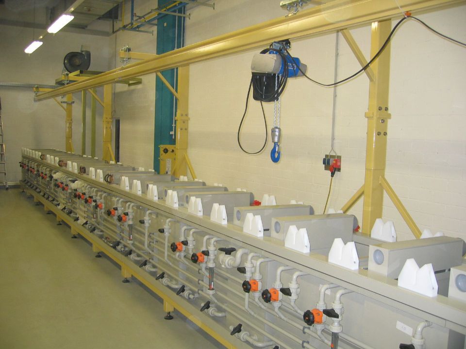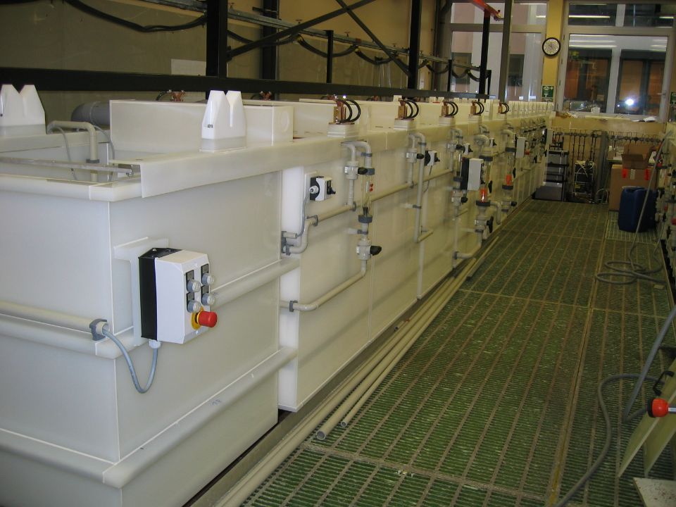 Unsere Galvanoanlagen sind komplett ausgerüstet mit Heizungen, Filteranlagen, Pumpen, Warenbewegung, Absaugung, Lufteinblasung, Dosierungen, Gleichrichter und Transportsystemen namhafter Hersteller.